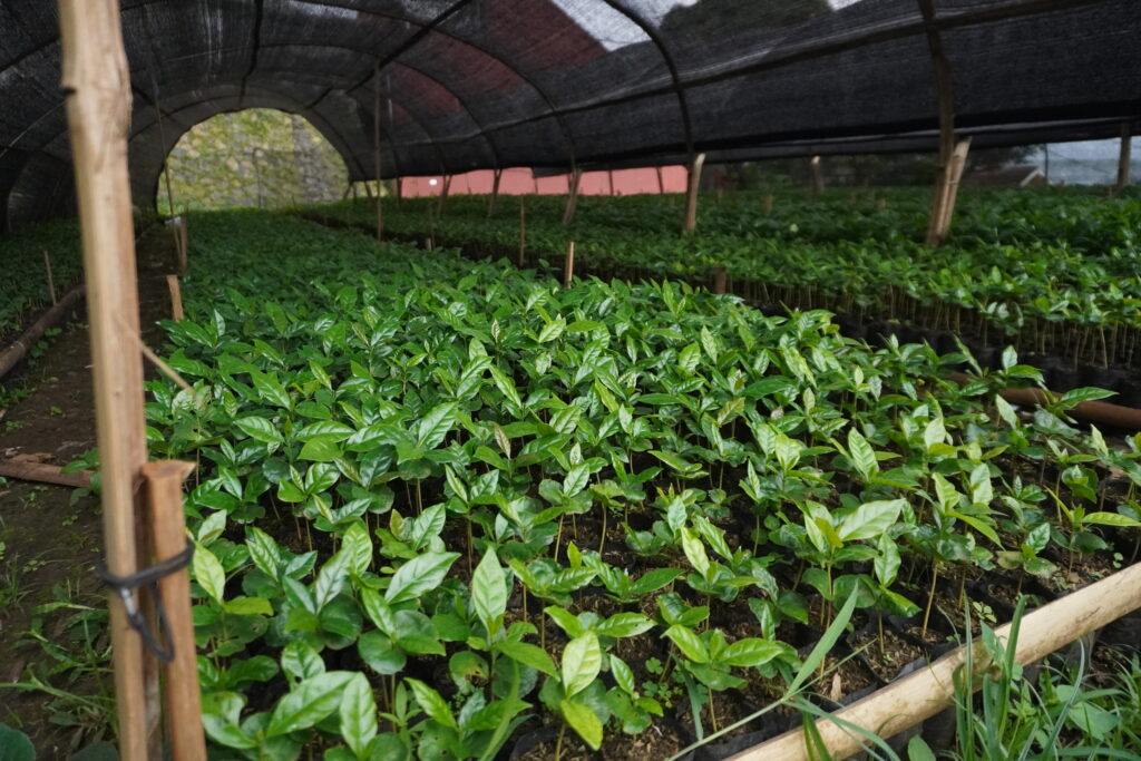 Farmers cultivate Kintamani coffee at elevations of around 900 meters above sea level. They grow coffee plants alongside vegetables and fruit trees, creating an integrated farming system. This approach supports soil health and reduces dependence on chemical inputs.